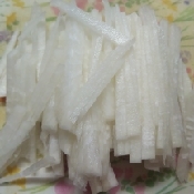 大根は繊維に沿って千切り(縦に切ります)にします。
