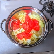 キャベツ・完熟トマトはざく切りにする。