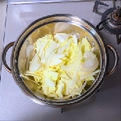 鍋にごま油・キャベツ・玉ねぎを入れてコールドスタート。