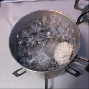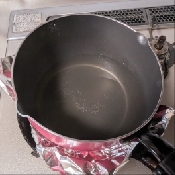 アルミホイルを被せて水を張ったフライパンをのせてじっくりと焼く。