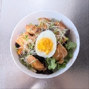 丼にご飯を盛り付けてレタスをちぎって敷き詰める。