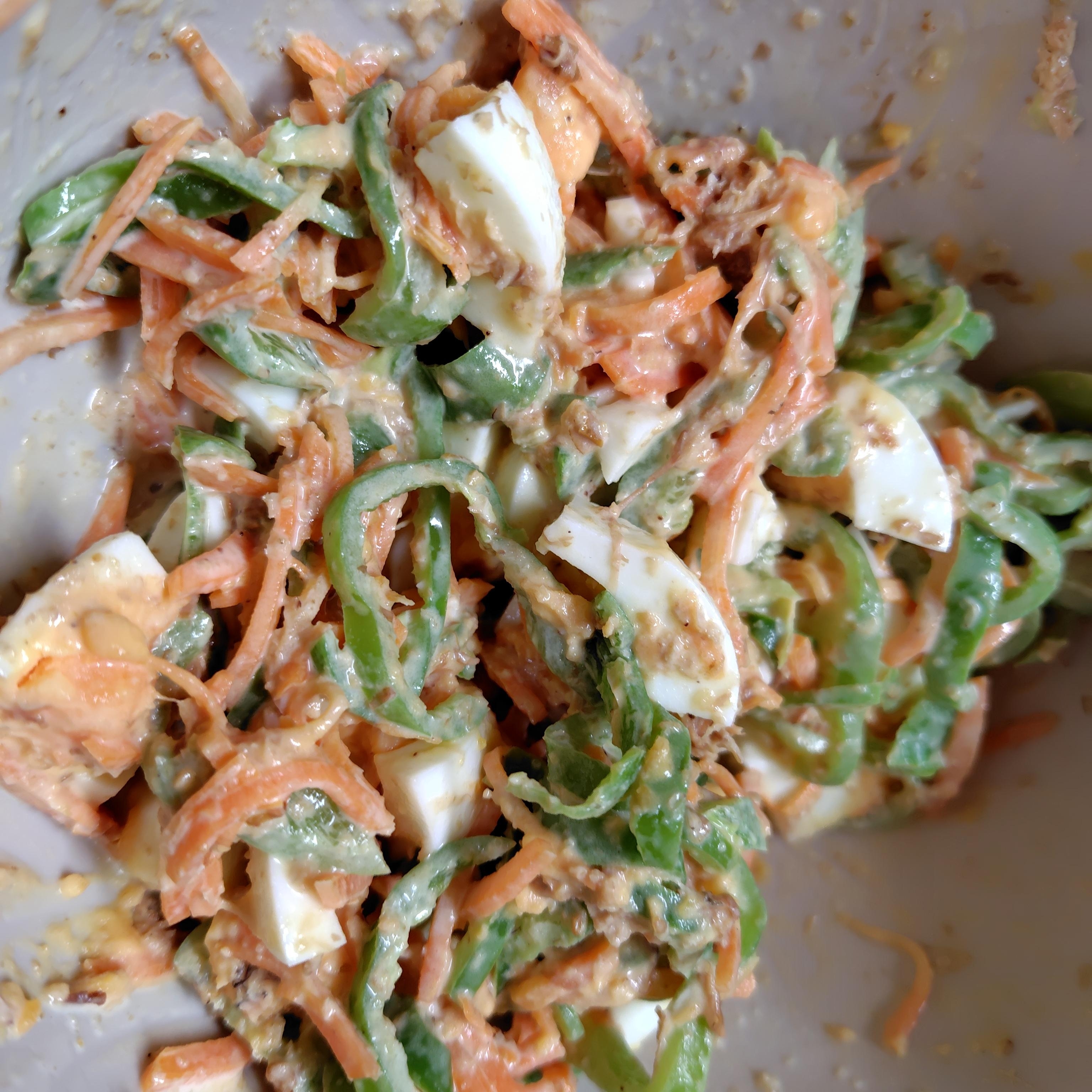 栄養満点♡ピーマンとにんじんと卵のごまマヨサラダ レシピ・作り方