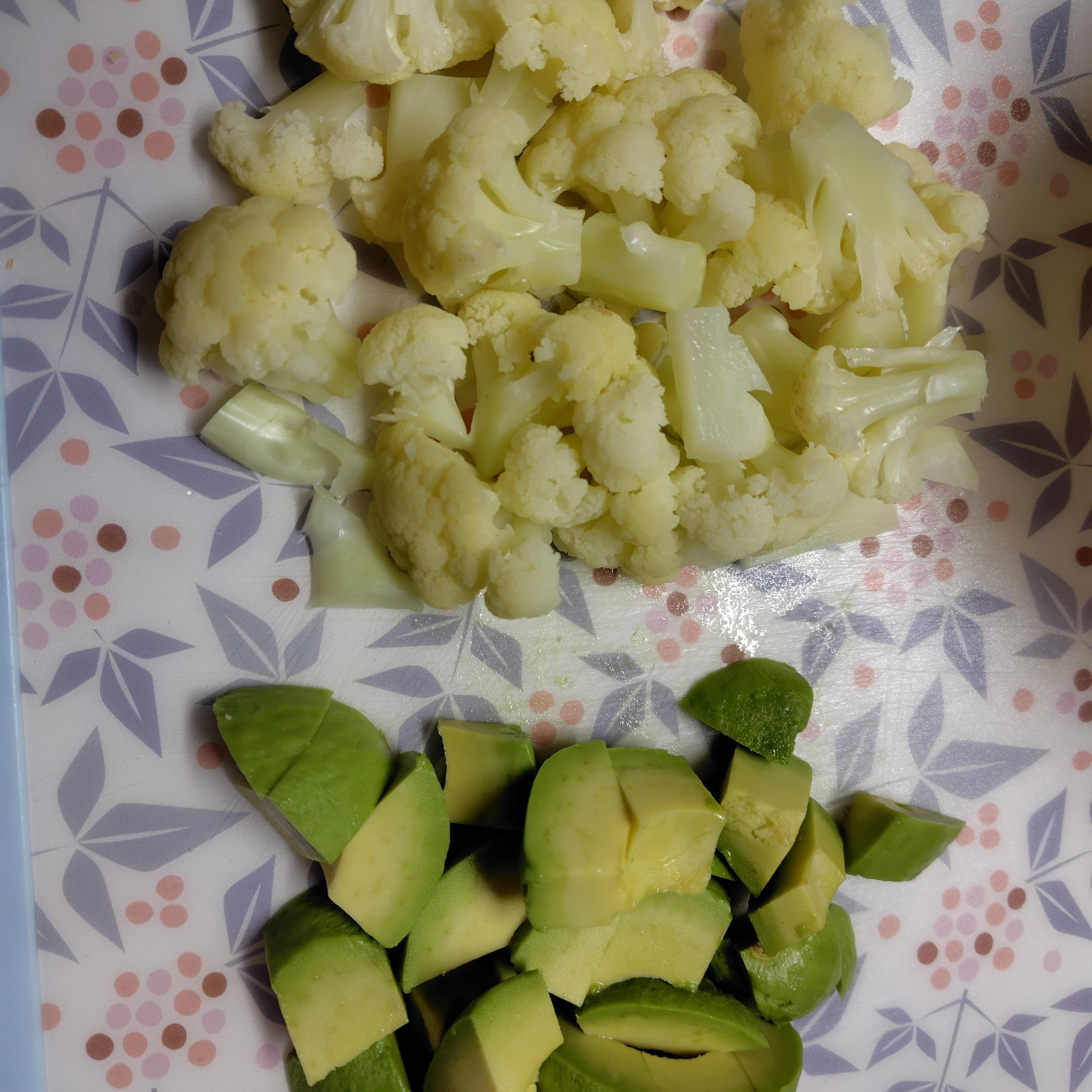 アボカドとカリフラワーは食べやすい大きさに切ります。