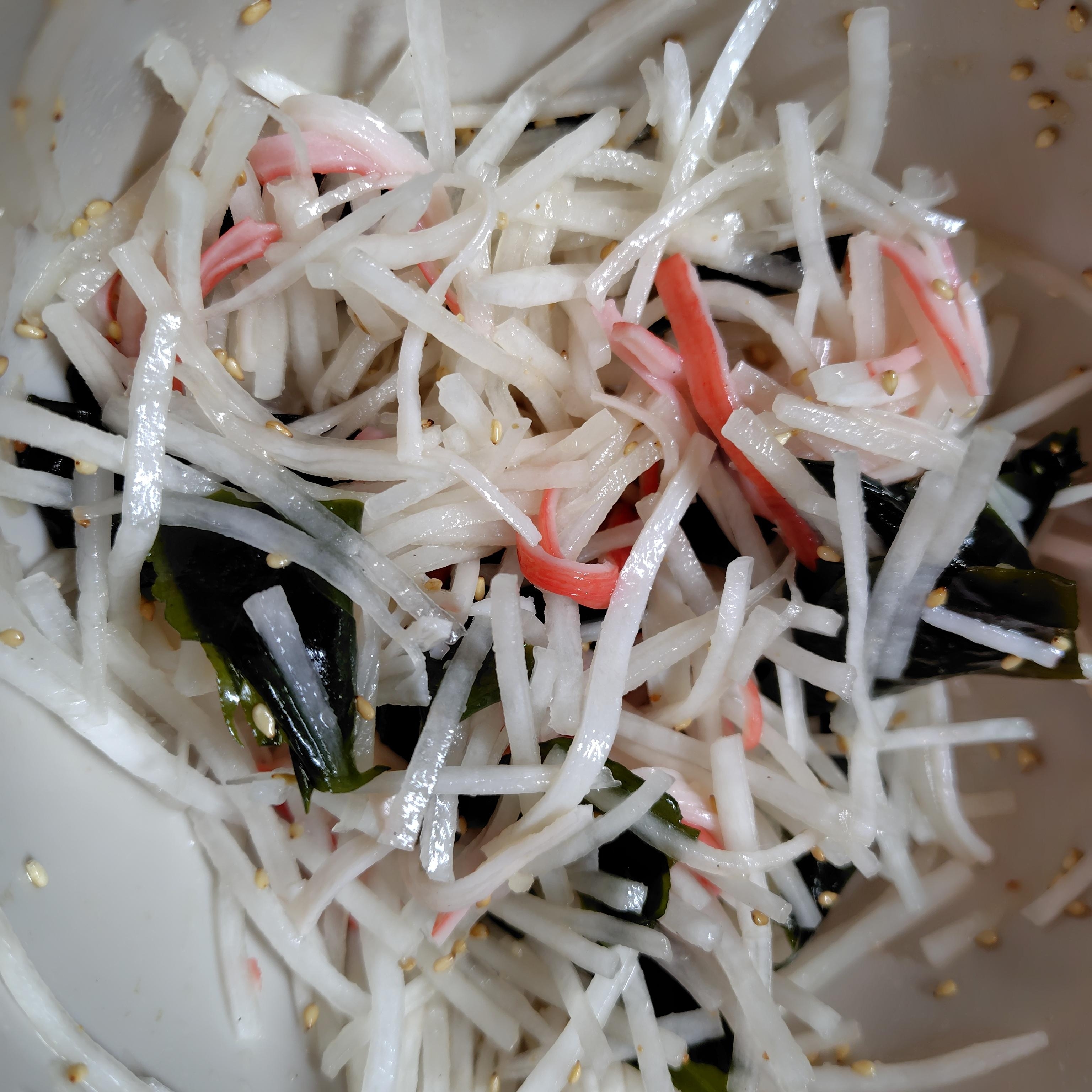 大根・カニカマ・わかめで彩りも◎なやみつきナムルです♡