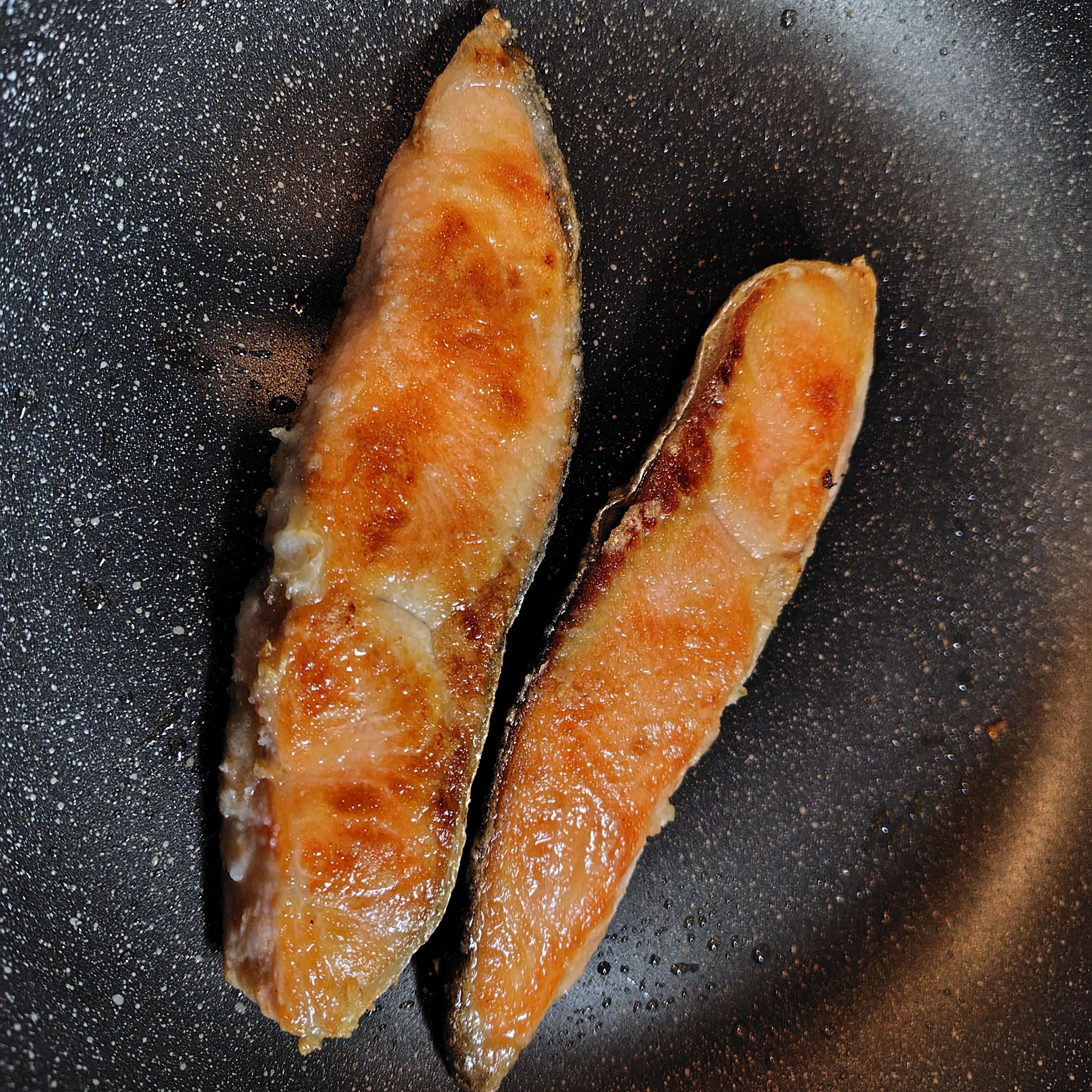 鮭の切り身は水気をキッチンペーパーで拭き取り、軽く塩こしょう(分量外)し、米粉を全体にまぶします。