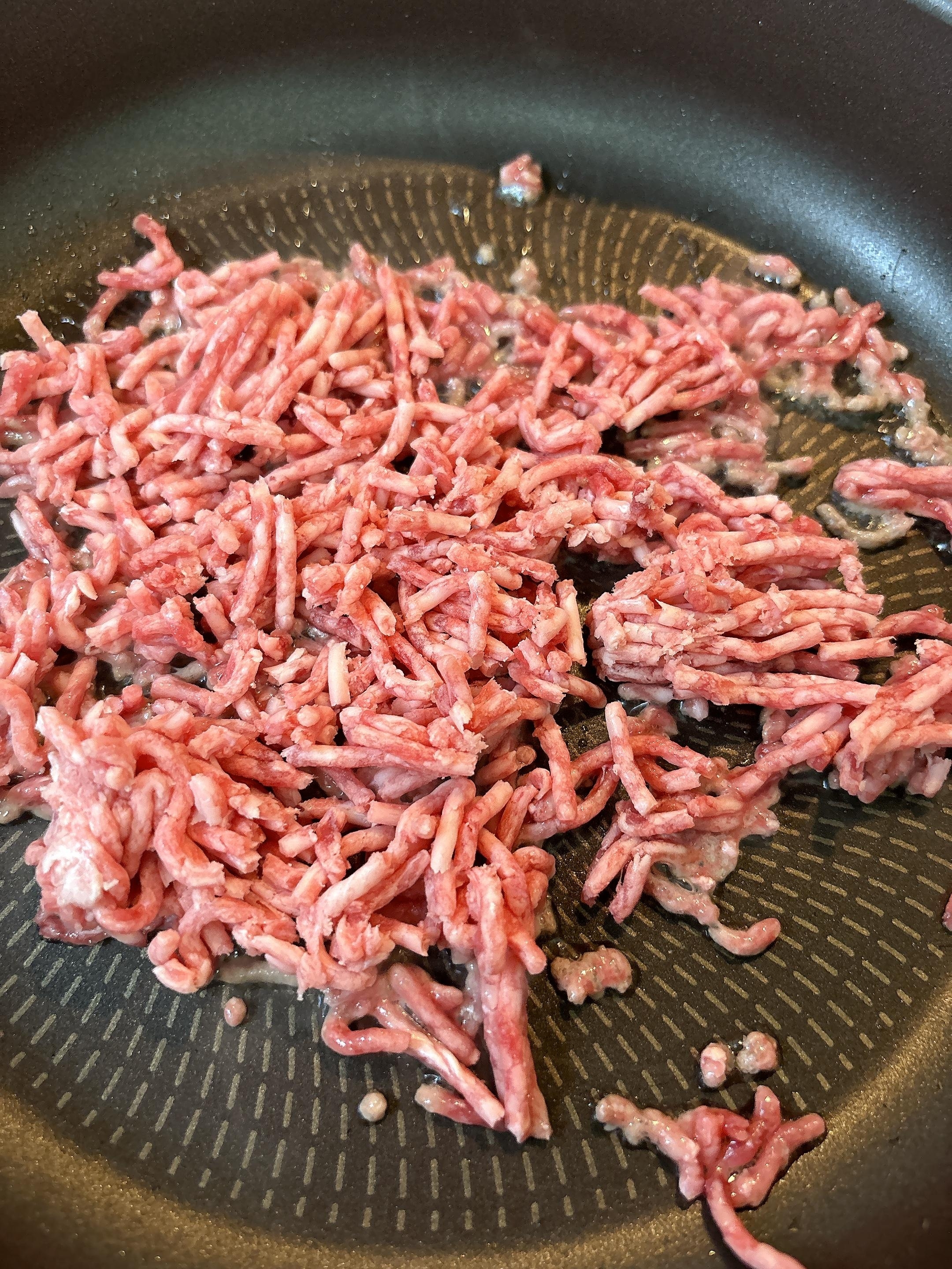 フライパンを熱しひき肉を炒め火が通ってきたら★の調味料としめじを追加し炒める。