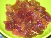 鰹は食べ易い大きさにカットし◆と和え冷蔵庫で30分程度 漬けておきます。大葉は千切り、ミョウガはスライスしておきます。