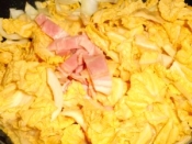フィノッキオとザク切りにした白菜(オレンジ芯品種使用なのでオレンジ色です)と細切りにしたベーコンと水を入れ蒸し煮にします。
