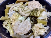 キャベツ豆もやし昆布ブロッコリーおくら鶏つくね蒸 レシピ・作り方
