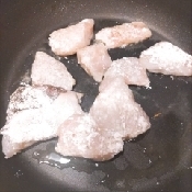 塩をふっておいた鱈の水気をキッチンペーパーで拭いて、さらに粉をふるう