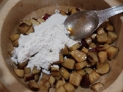 3の中に黒砂糖と小麦粉を入れて混ぜる。