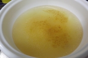 スープ用の水、コンソメ、ホタテ顆粒、ホワイトペッパー、ブラックペッパー、天塩、ナンプラー等を入れてスープをつくります