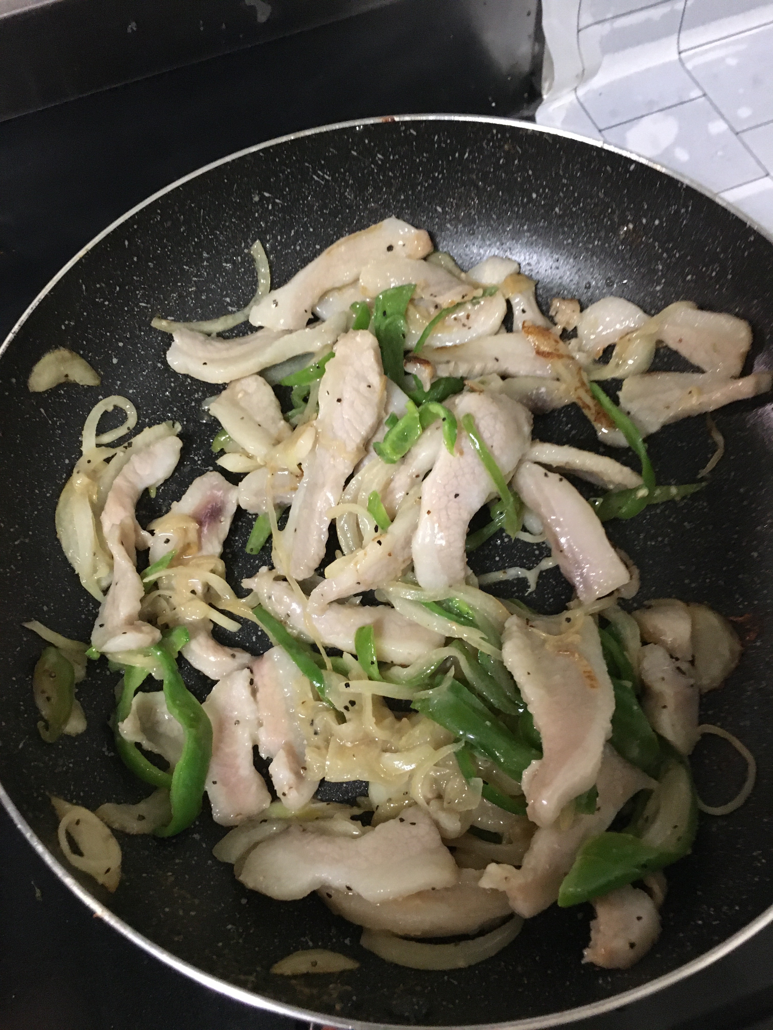 ピーマンは細切り、玉ねぎは薄切りにする。