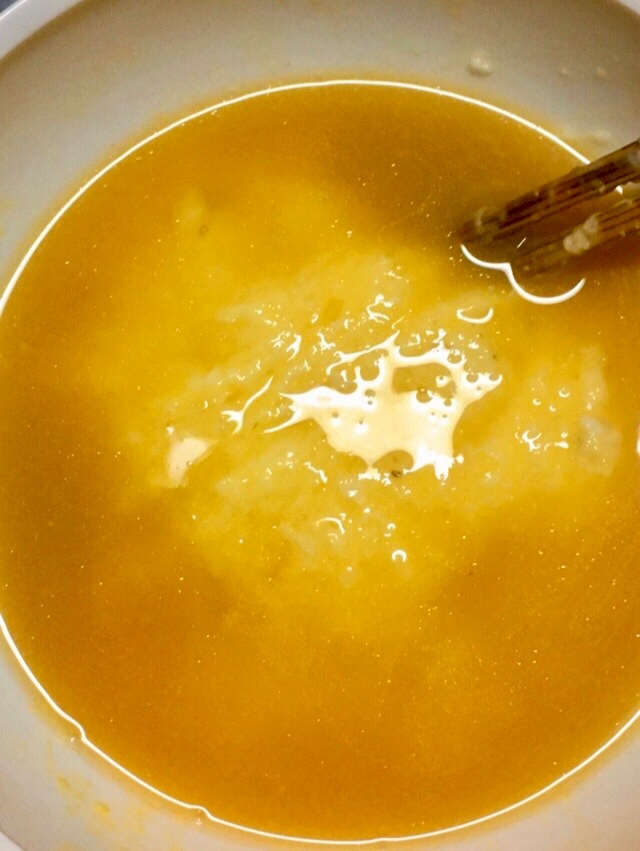 1に、粗熱を取った2を少しずつ加え優しく混ぜ合わせます。