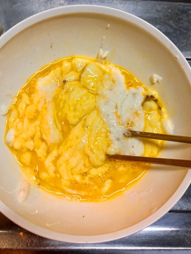 皮を剥いてすりおろした山芋に溶き卵を加えよく混ぜ合わせます。