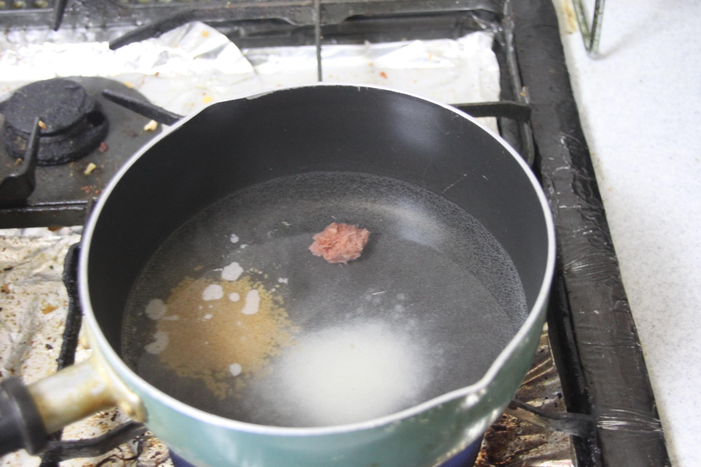 小鍋に水を入れ、梅干しの種を入れてお湯を沸かします。