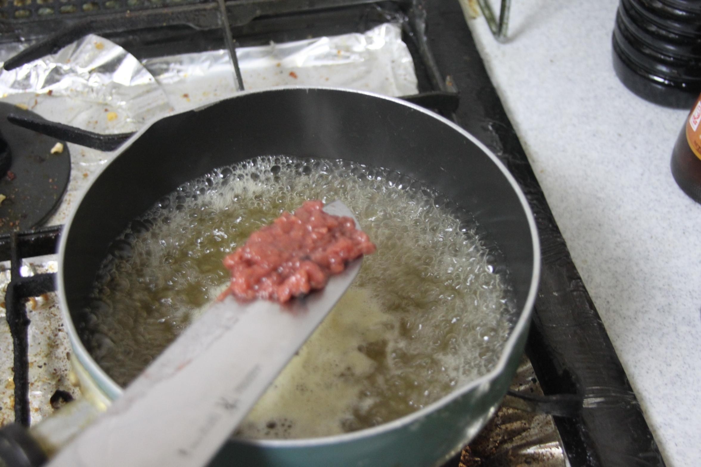 梅干しの種を取り除き、実の部分をたたいてペースト状にします。