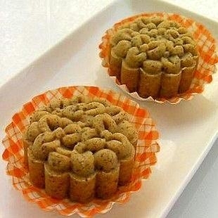 ドライ桂花入り緑豆餡で(皮生地も緑豆餡)。