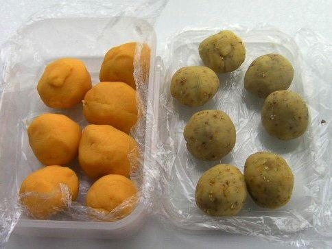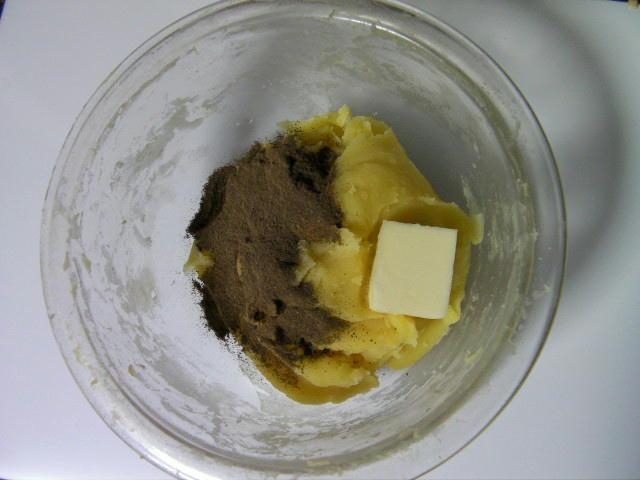 水分が飛んで、手につきにくくなったら茶葉とバターを加えてよく練る(出来上がり量280~300g位)。