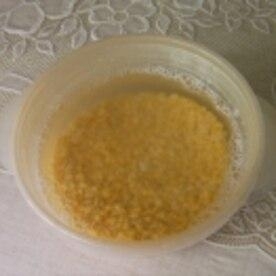 耐熱ボウルに移し、砂糖、コンデンスミルク、塩を加えて電子レンジで加熱する。