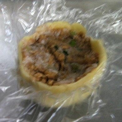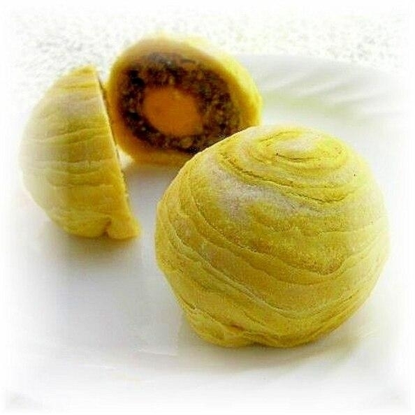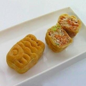 ハムやフカヒレ等高級食材を材料に用いた甘じょっぱいものもありますが、手頃なさばフレークで普段の食事用月餅を作ってみました。