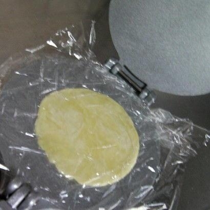 ラップではさみ、底の平らな皿等※で9~10cmの円になるように押し伸ばす。