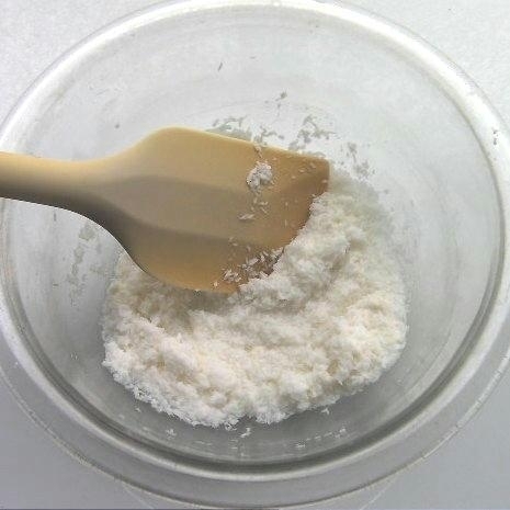 電子レンジ(600W)で約2分加熱する(途中1回取り出して、ゴムベラで混ぜる)。