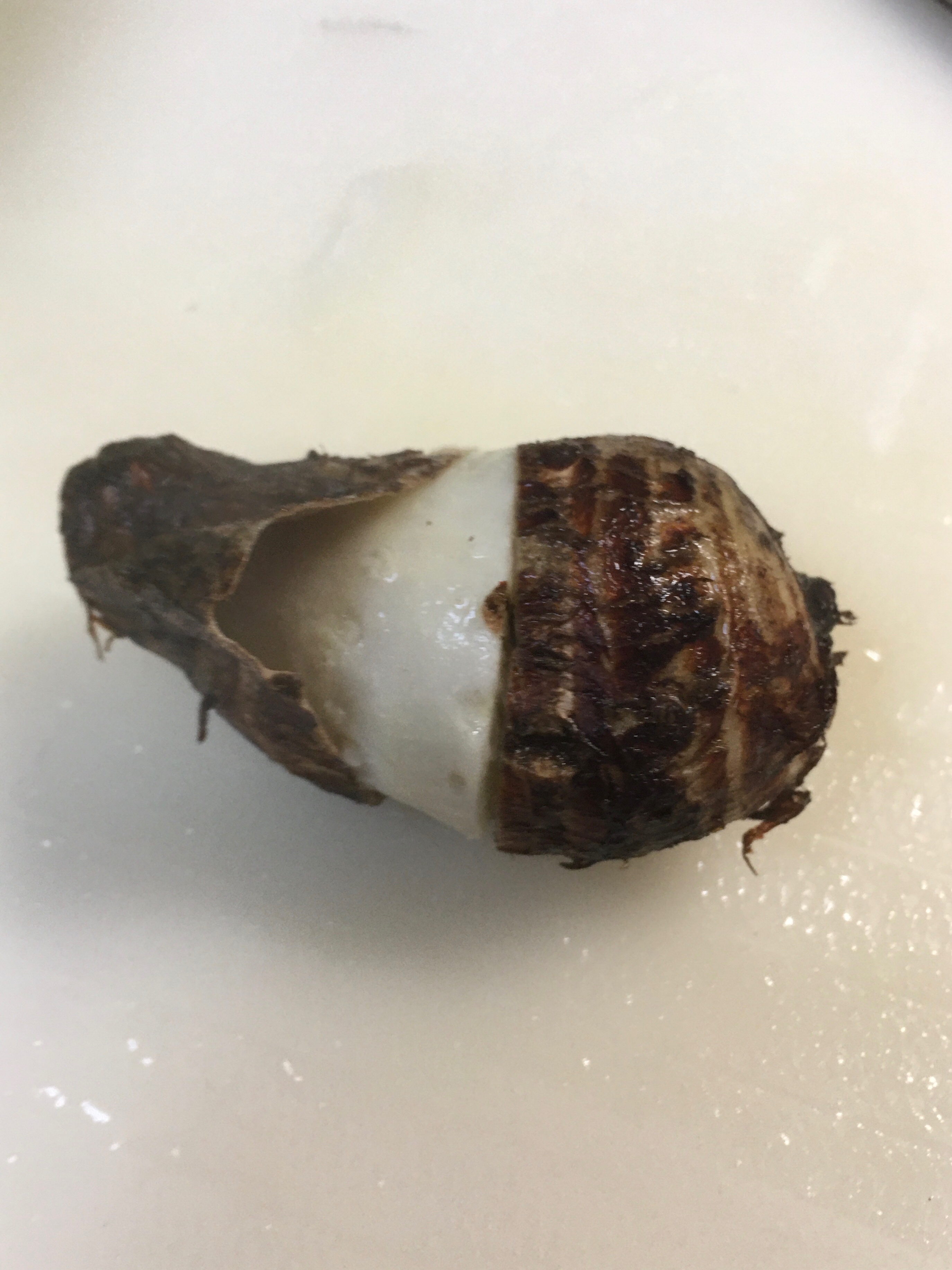 レンジから取り出し、少しねじると、つるんと、皮が剥がれる。