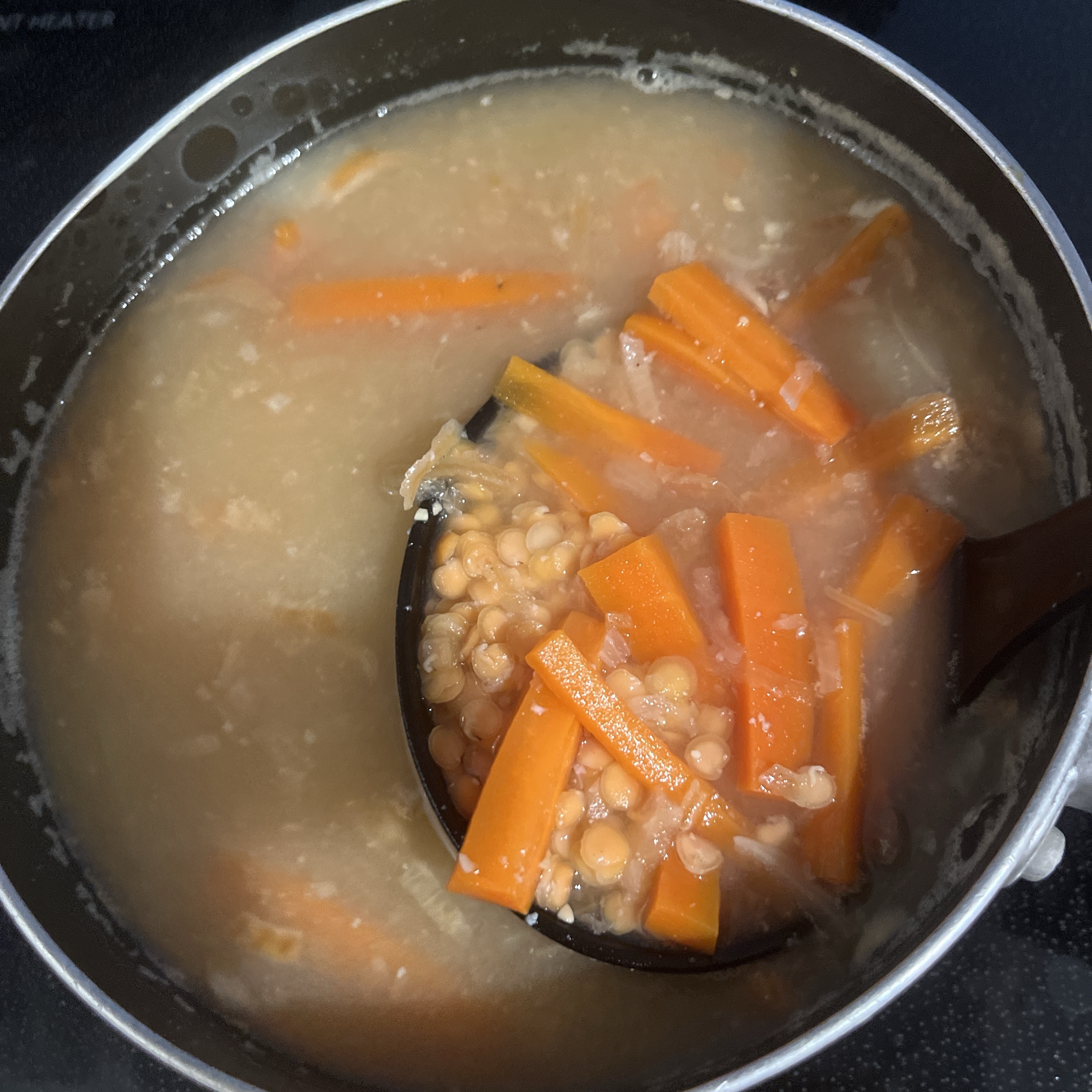 エスニック食材店で買った赤レンズ豆とドライオニオンが余っていて、コンソメスープではない食べ方を試したいな、と。ごまと味噌だけだと「ただの味噌汁」に感じて物足りなかったので、砂糖を加えたら「ごま味噌スープ」としてコクが出たのでレシピ化。