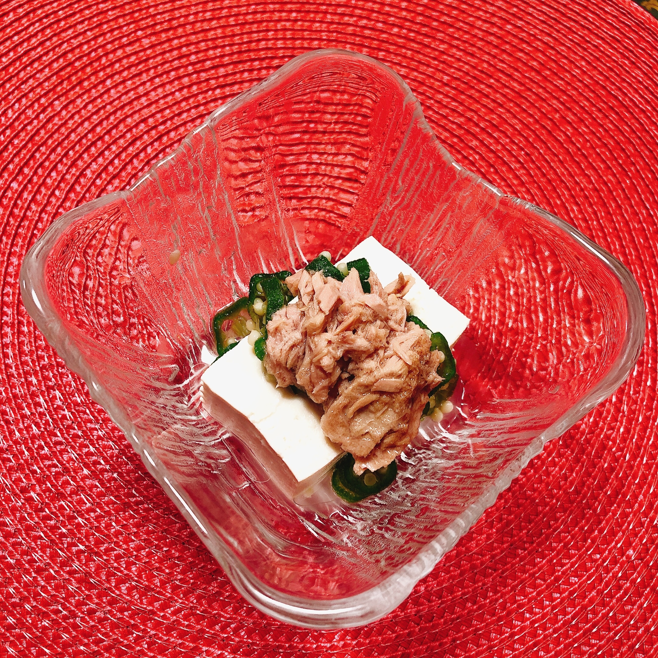 豆腐にオクラ、ツナを乗せる。