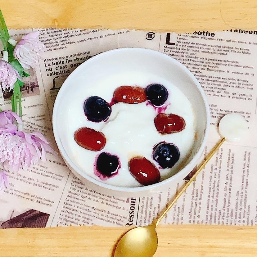 ◯◯粒粒ヨーグルト(ブルーベリー、豆) レシピ・作り方