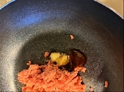 - 5 2をのせ、C、付属の七味唐辛子をかける。