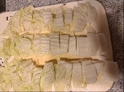 白菜は、縦に3等分に切り、繊維に沿って2㎝幅に切る。