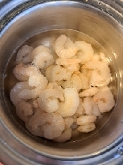 むきエビは、解凍し、塩(少々、分量外)を加えた お湯で茹で、ザルに上げる。