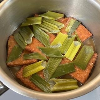 「3」に長ねぎの青い部分を加えて、火が通るまで煮て出来上がり。