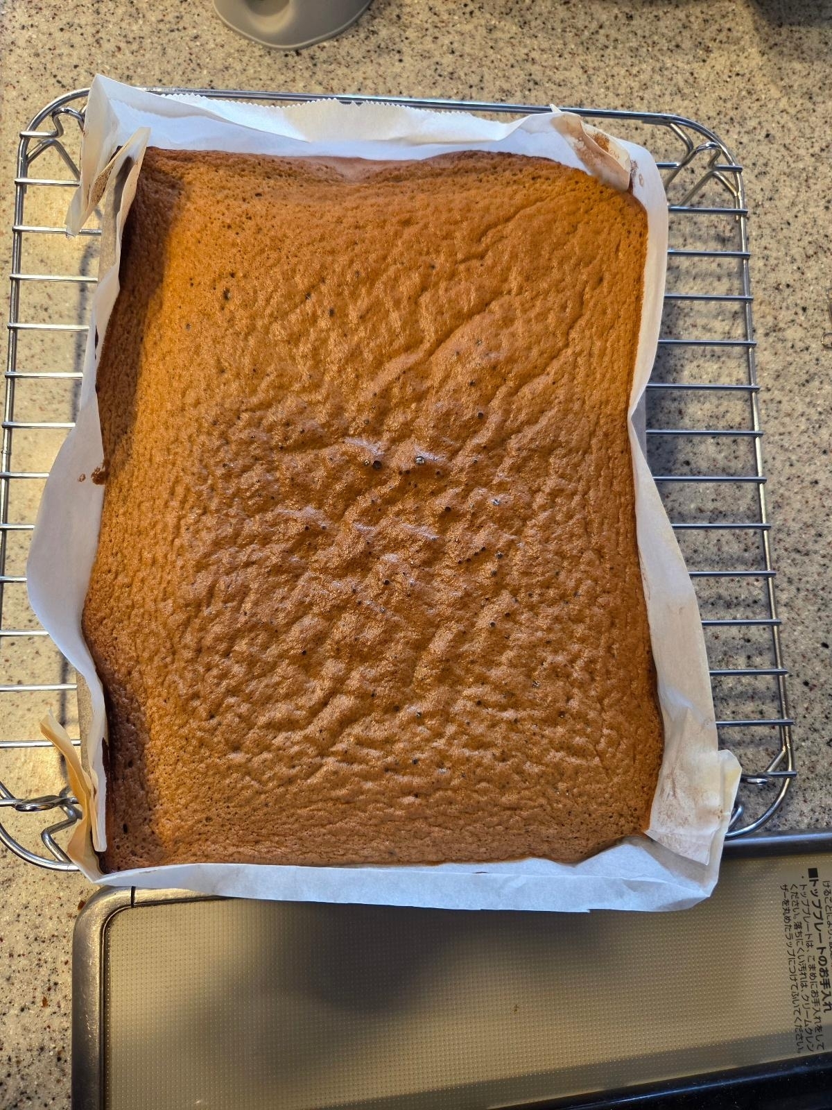 - 8 網の上に型ごとのせ、上に ふんわりラップをして、あら熱が取れたら、型紙をはずす。