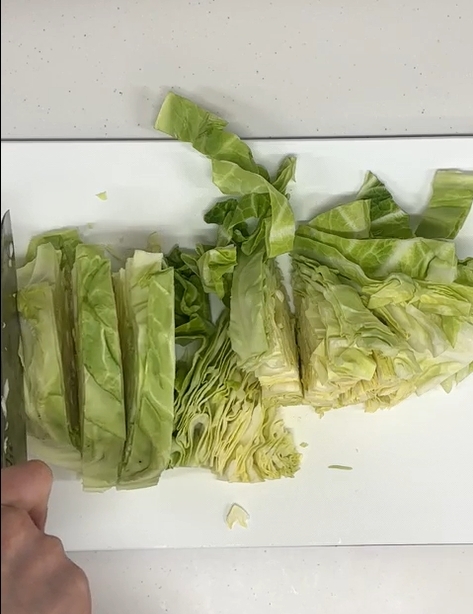 キャベツは4cm幅の千切り、ニラは4cm幅に切る。