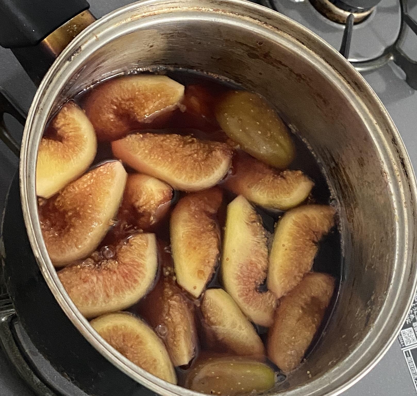 イチジクがくずれないように静かに煮ます。 アイスクリームとよくあいます。
