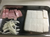 はんぺんは一口大、ベーコンは短冊、玉ねぎは薄くスライスにする。