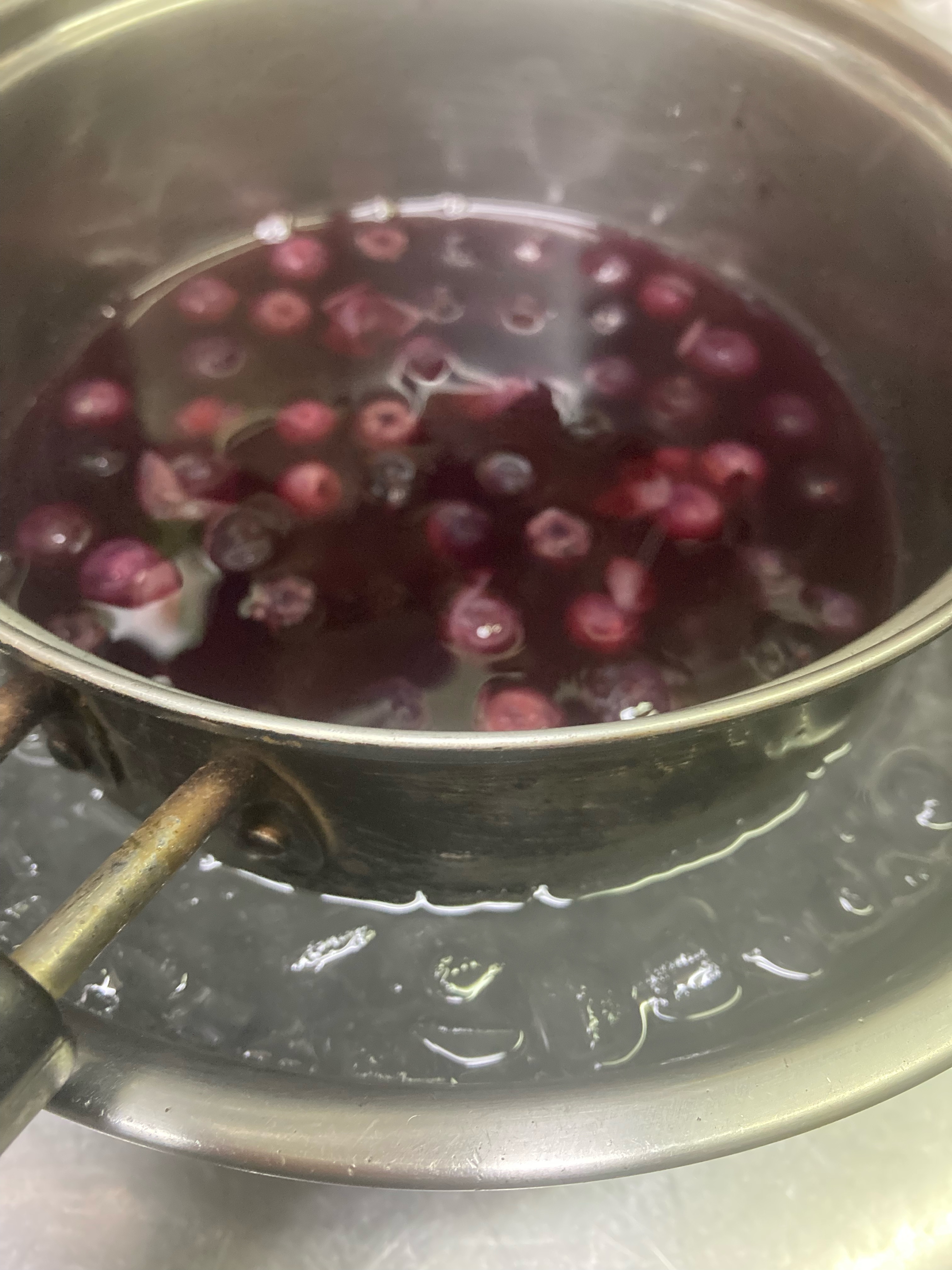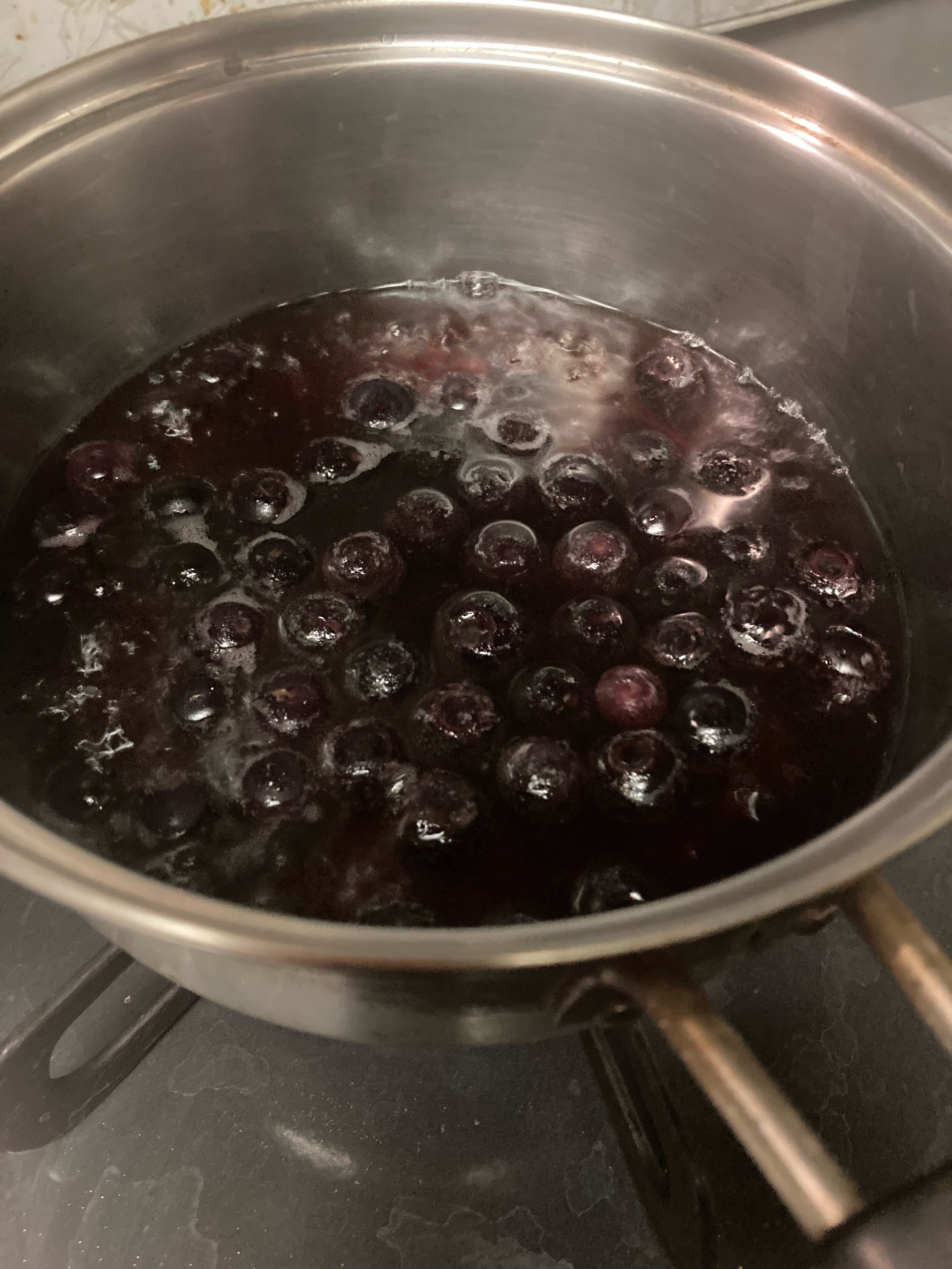 鍋に冷凍ブルーベリー・水200ccと砂糖を入れ火にかけます