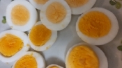 卵をゆでて殻をむき、スライスする。