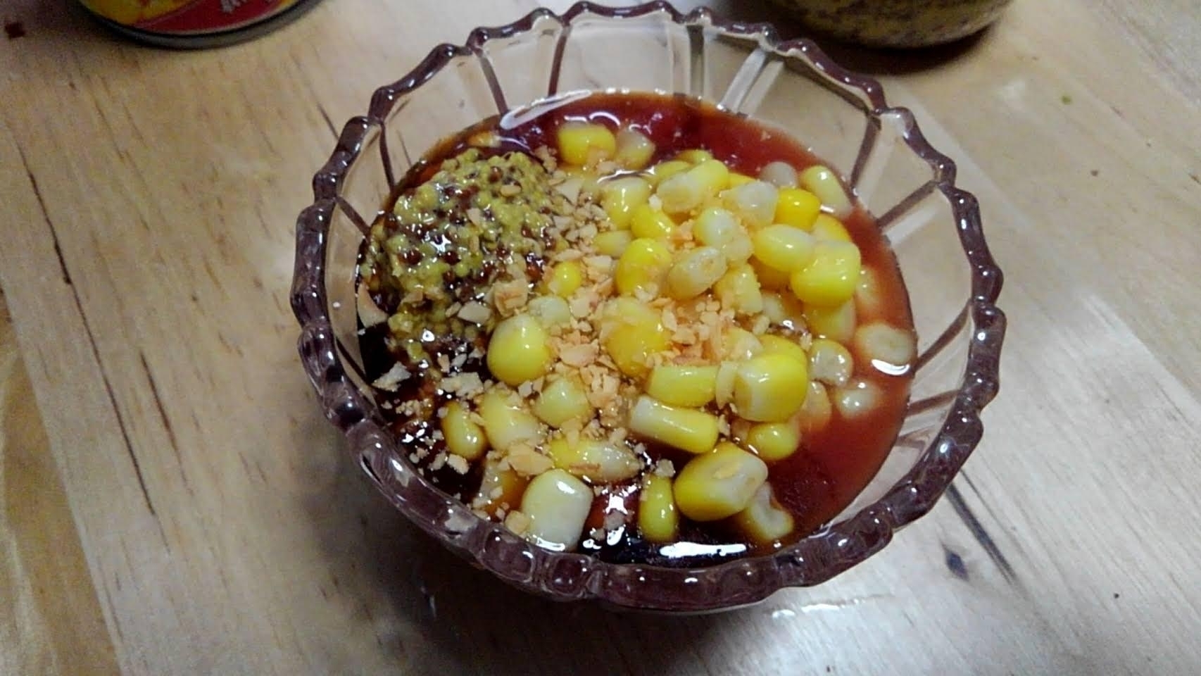 その間にタレ作りです。トマト缶・焼肉のタレ・コーン・粒マスタード・にんにくチップを混ぜます。