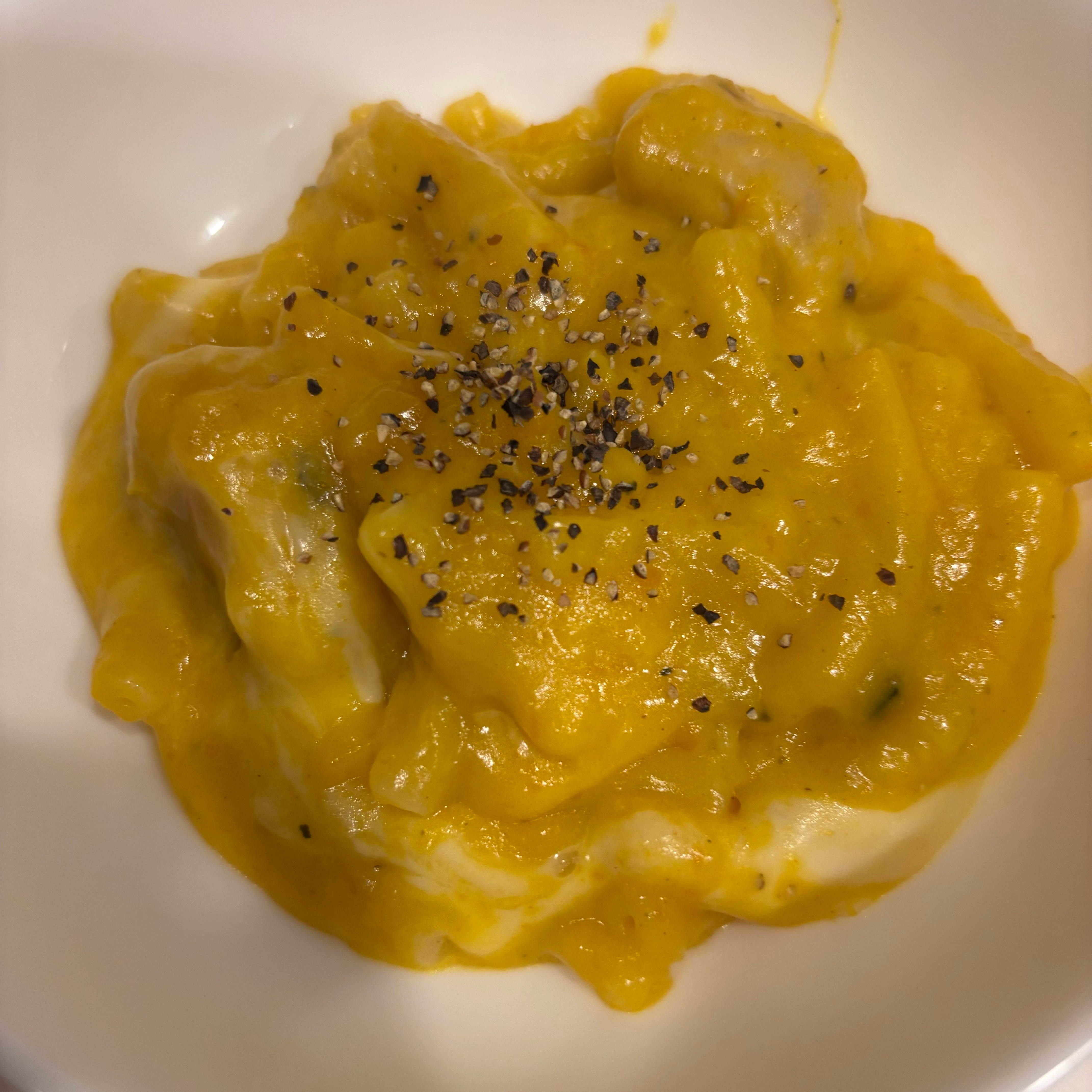 - 1 シチューを温め、マカロニを目安時間より1分短く茹でる