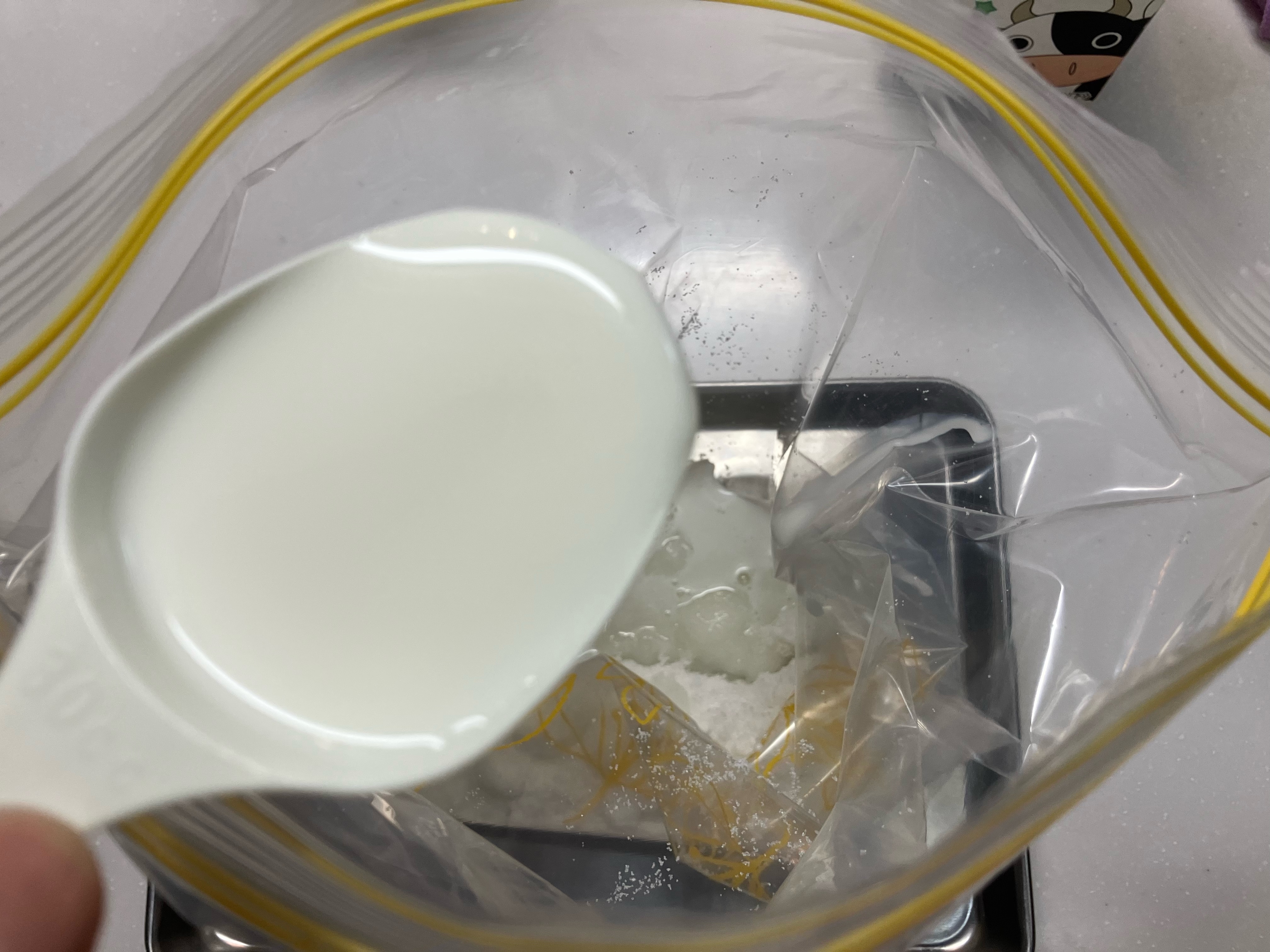 牛乳を入れます。