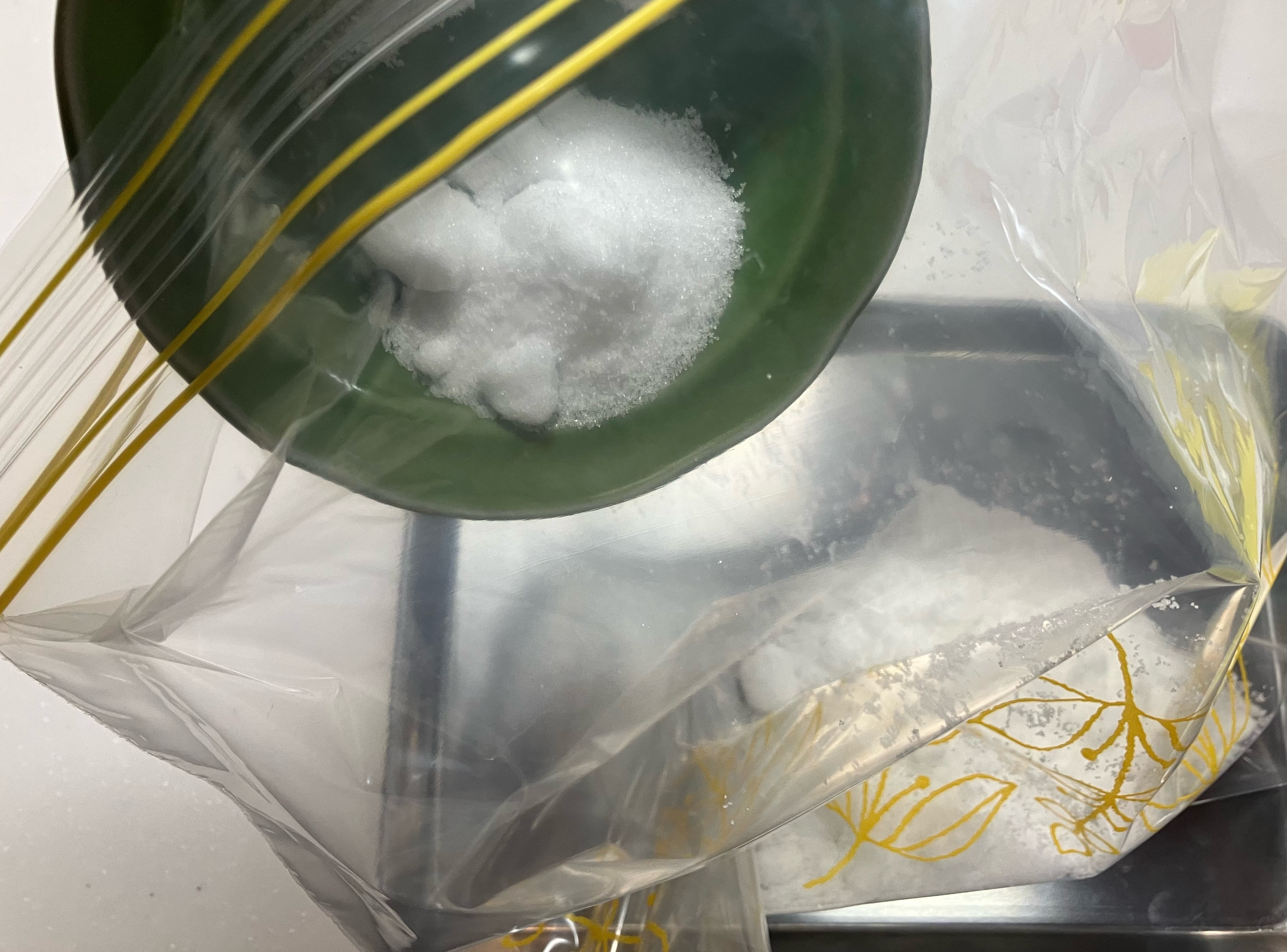 A4サイズくらいのジッパー付き袋に砂糖と塩を入れます。