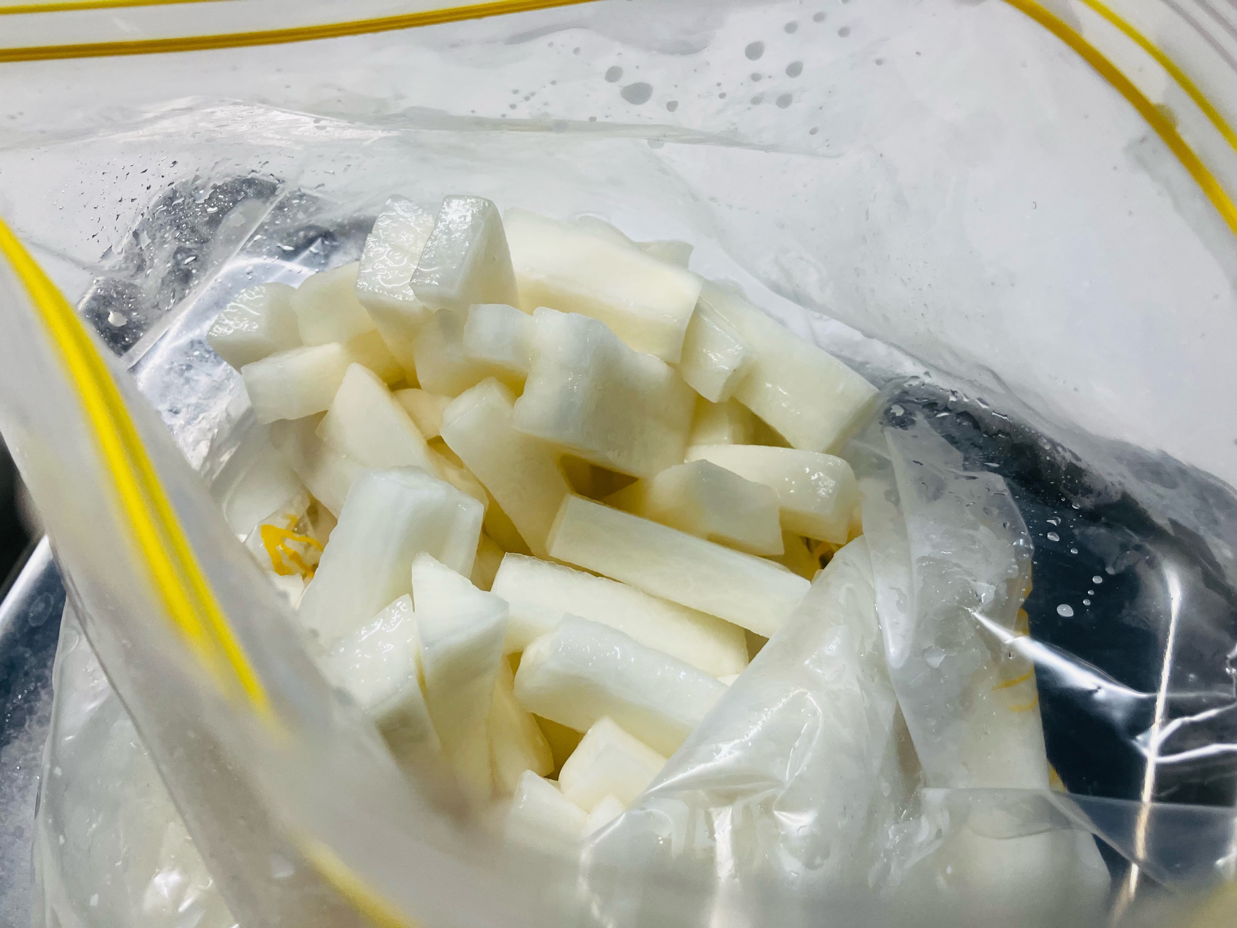 空気を抜いてからジッパーを閉めて、大根に漬け汁をよく馴染ませます。