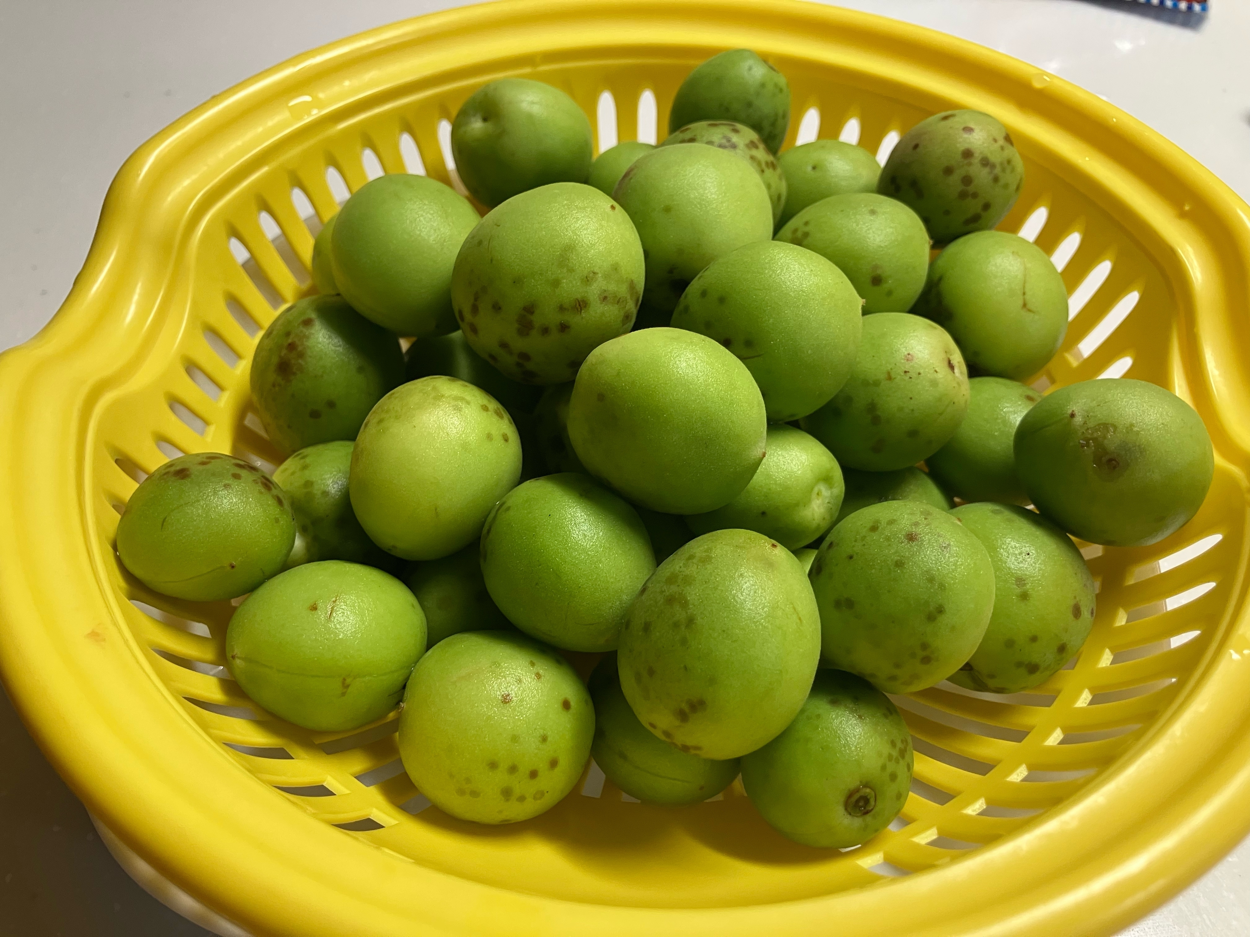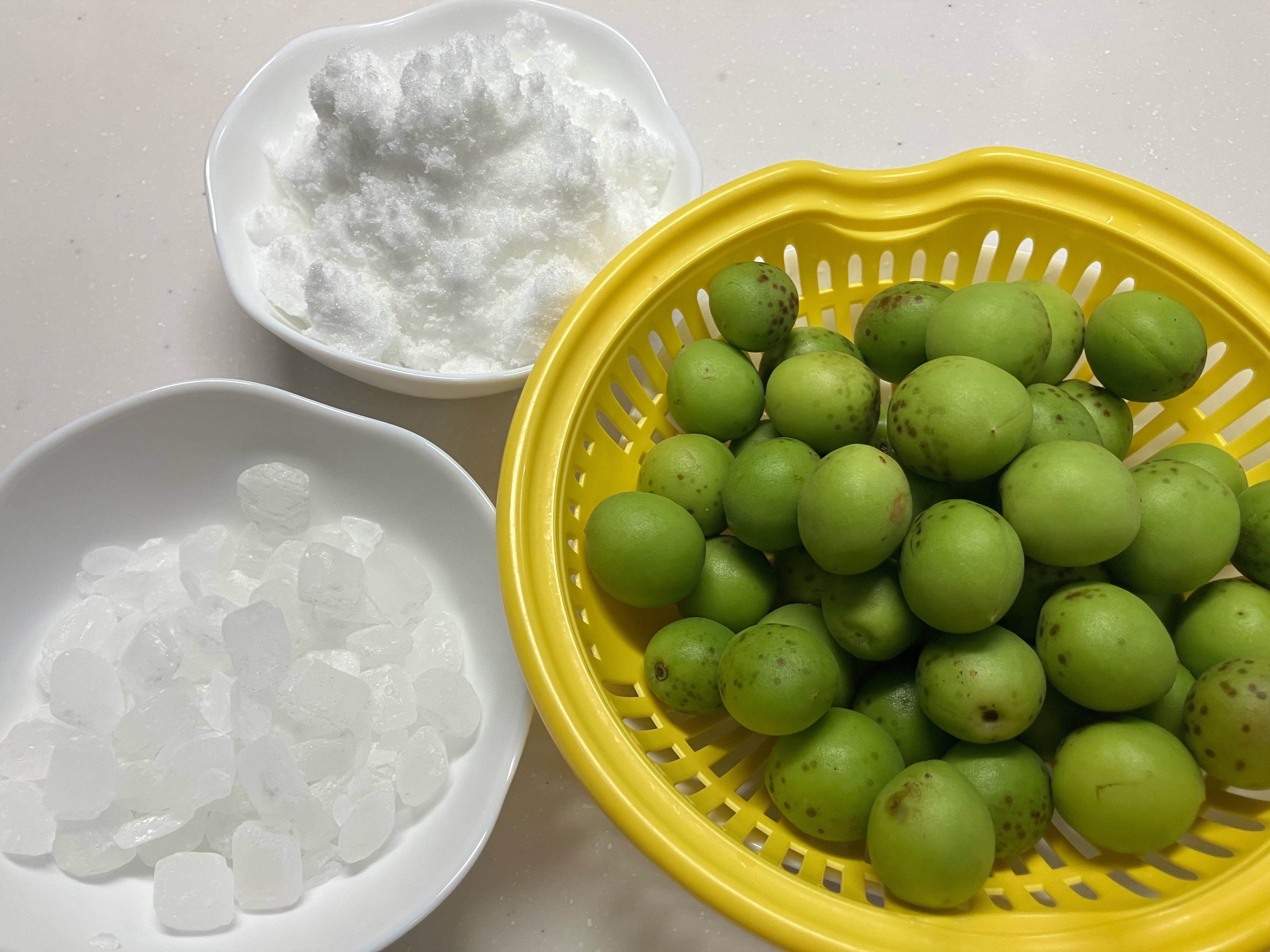 青梅は、楊枝などでヘタを取り除き、よく洗って水気を切ります。