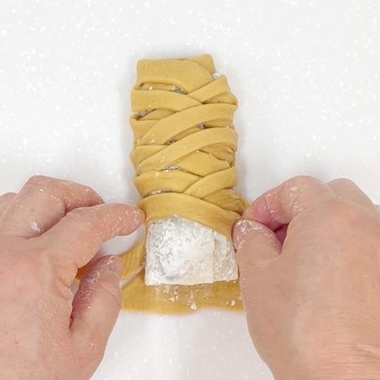 工程6)の成形時に隙間を空けると中のぎゅうひが出てくるため、隙間なく成形すると綺麗に仕上がります☆