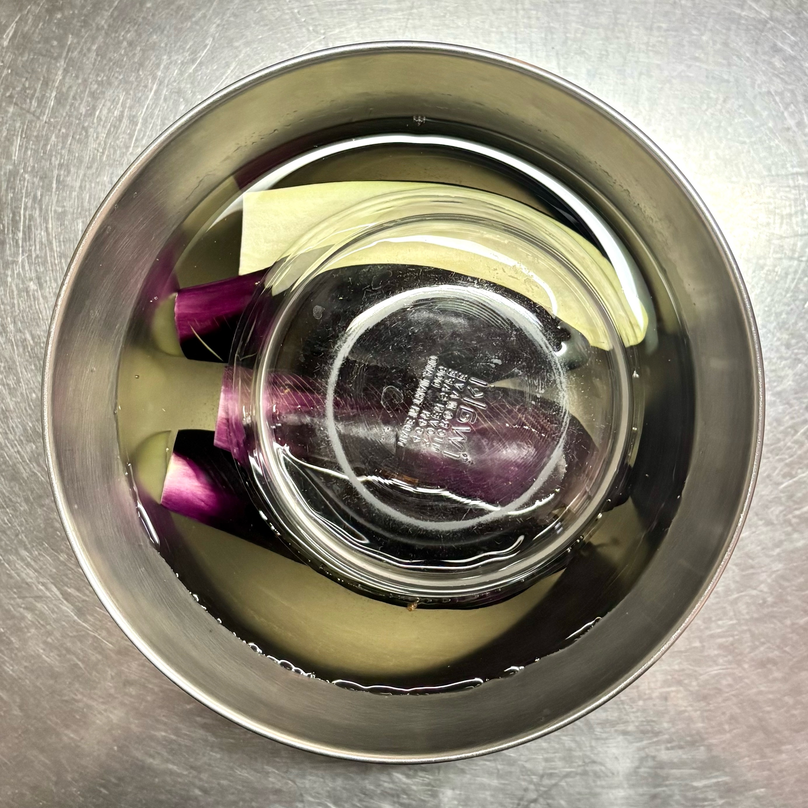 塩水(【A】)に入れ、浮いてこないように重石をのせて5分ほどつける。