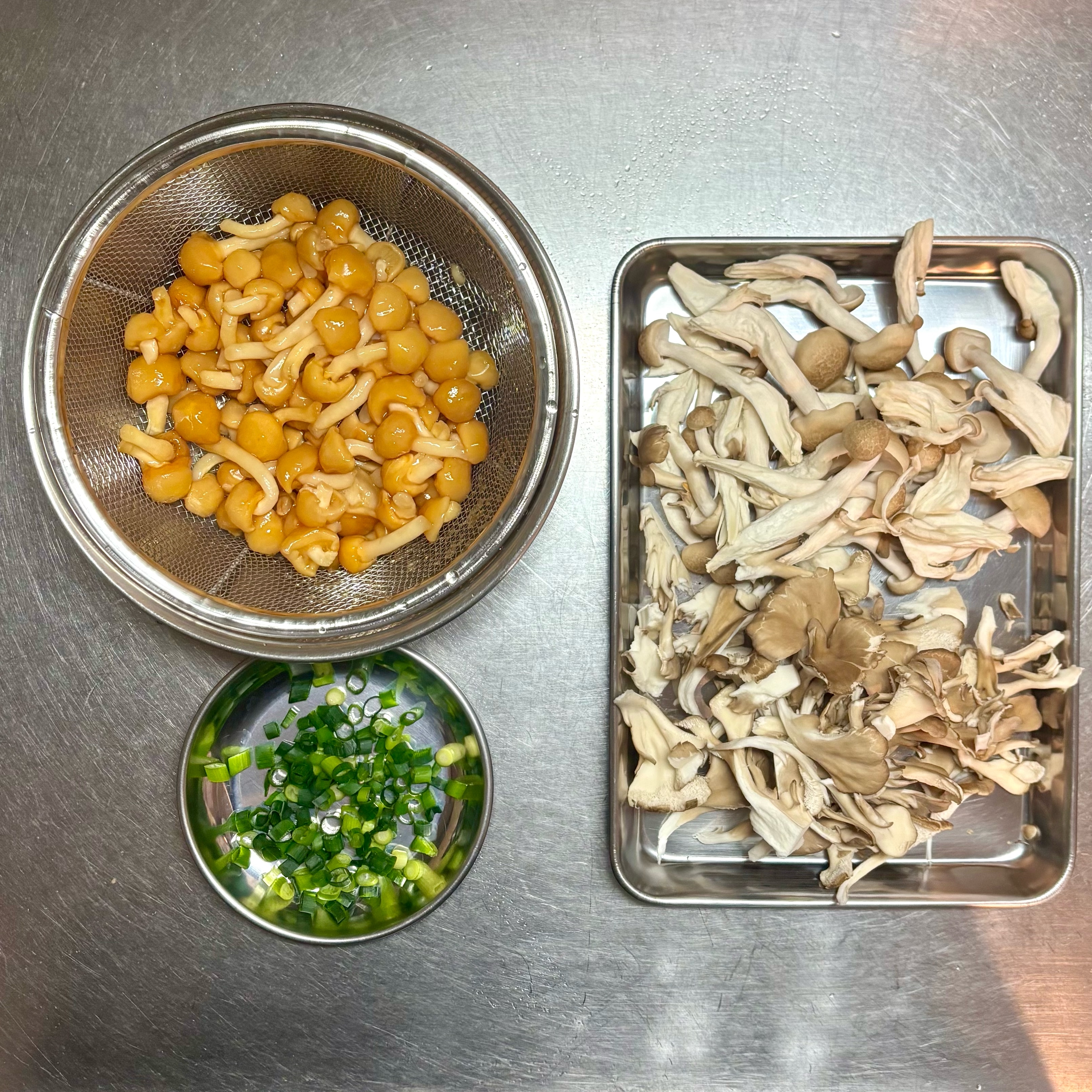 なめこはサッ洗って水気をきる。